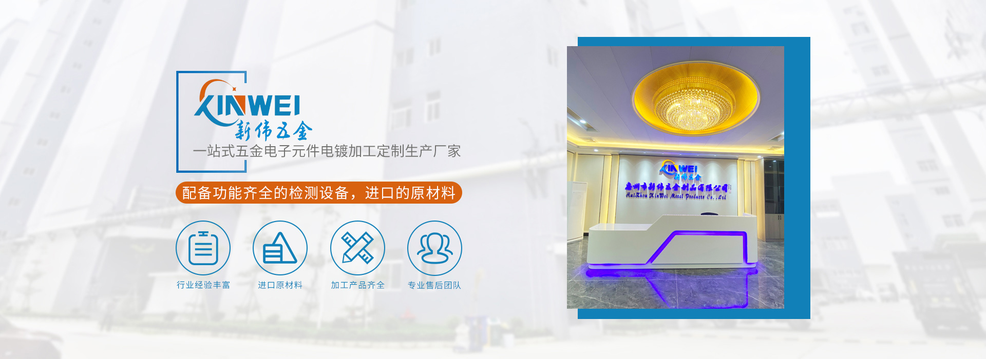 惠州市新偉五金制品有限公司(簡(jiǎn)稱(chēng):新偉五金)坐落于中國(guó)廣東省惠州市,成立于2010年,是一家專(zhuān)業(yè)電鍍各種高品質(zhì)功能性的環(huán)保五金電子元件供應(yīng)商,公司已通過(guò)ISO9001:2015及IATF16949:2016質(zhì)量體系認(rèn)證。客戶至上,品質(zhì)至上,承蒙新老客戶的信賴,公司發(fā)展迅速,廠房車(chē)間面積10000平方米,現(xiàn)有員工200名,并擁有一批從事電鍍行業(yè)10年以上、經(jīng)驗(yàn)豐富的技術(shù)骨干,為客戶解決許多疑難問(wèn)題,另有一支品質(zhì)工程小組,專(zhuān)業(yè)檢測(cè)產(chǎn)品品質(zhì),杜絕不良品外流,深受客戶好評(píng)。